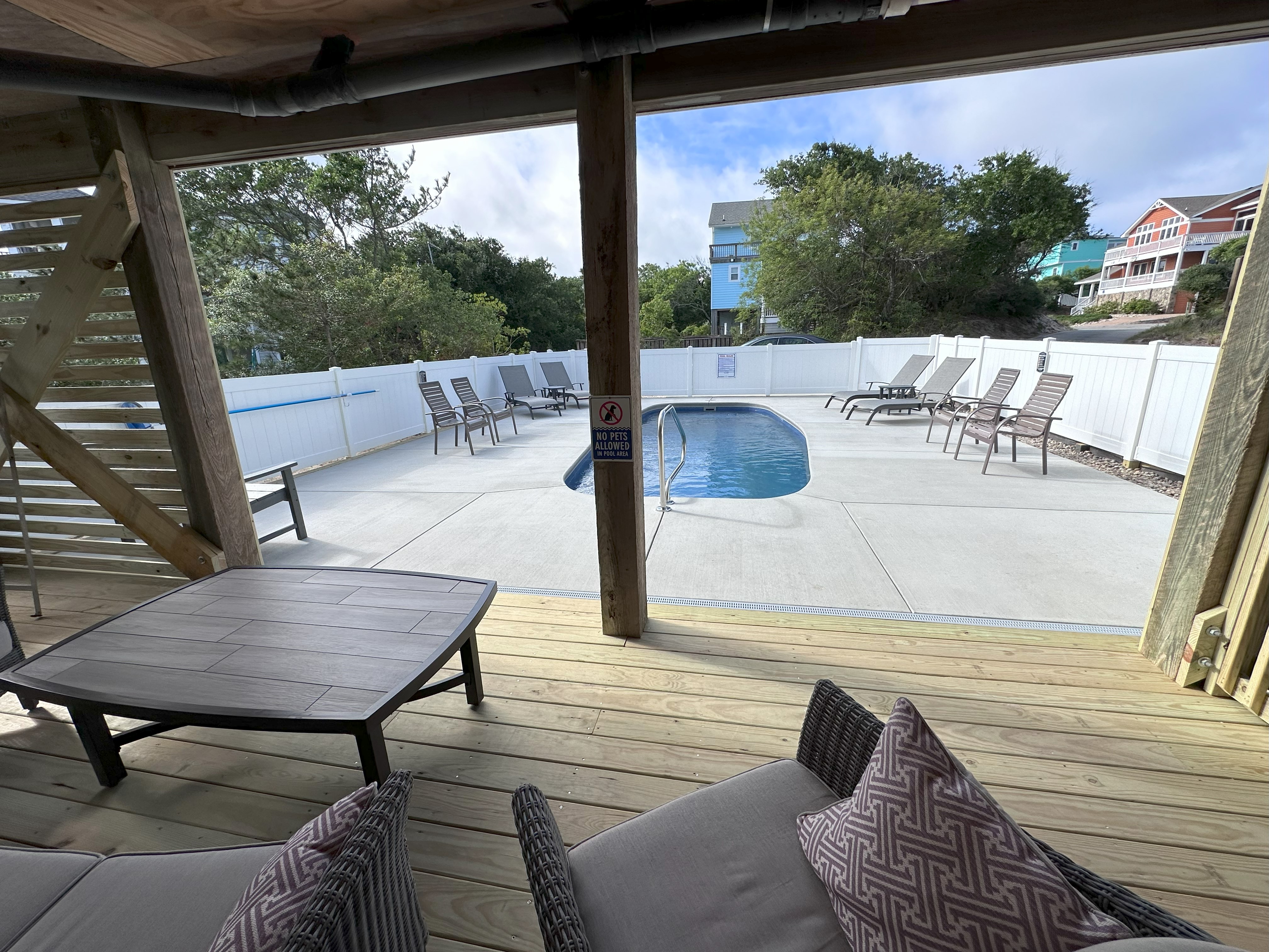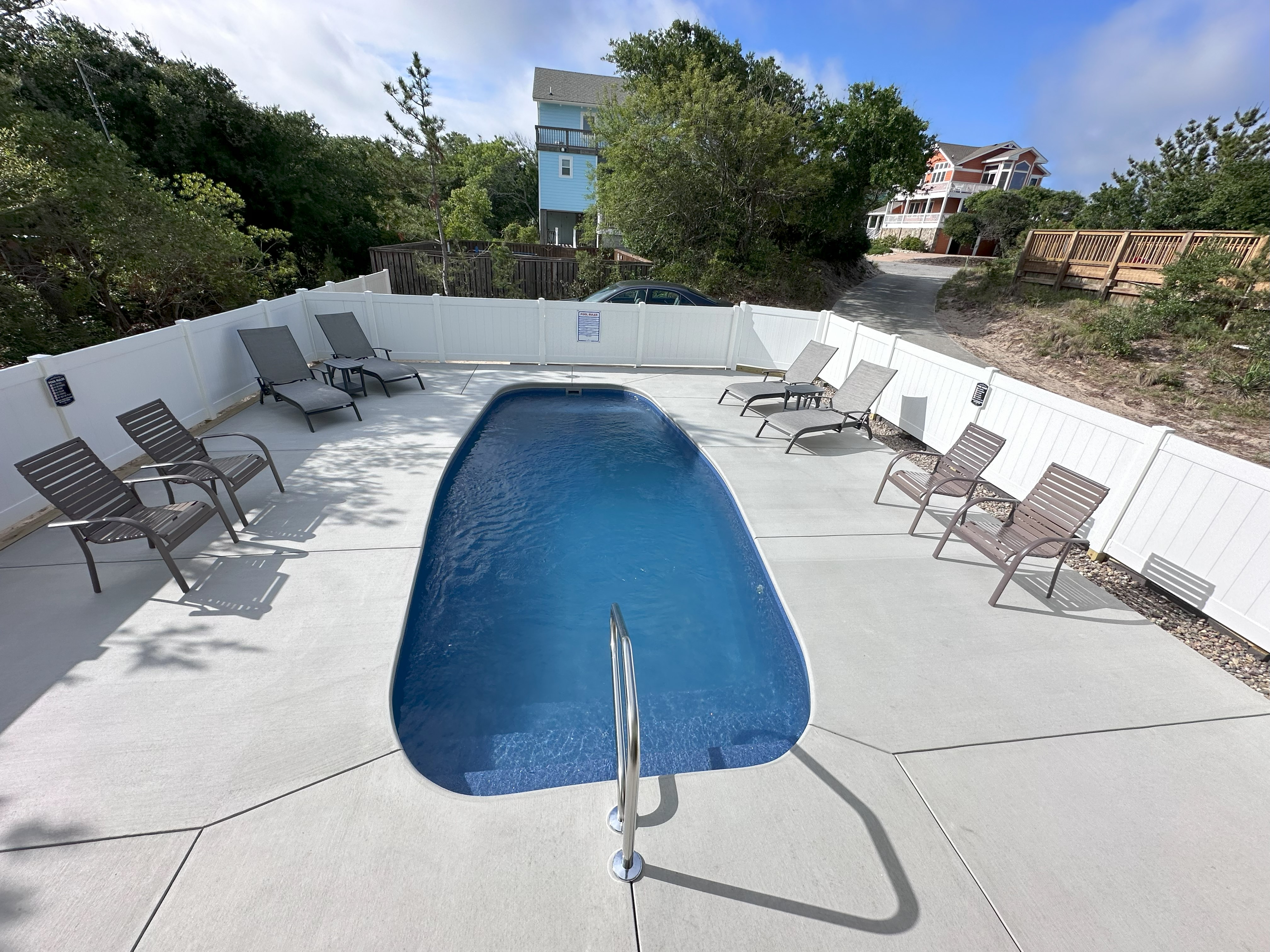 This outer banks rental home in Corolla, NC is perfect for your family vacation. Large kitchen, Florida room, pool and decks offer something for everyone. For the sports person golf (Currituck Club) is less than 5 minutes away, a paved bike and walking path is close, tennis is only one block down the street and of course you can swim or relax in your own private pool (heat option).