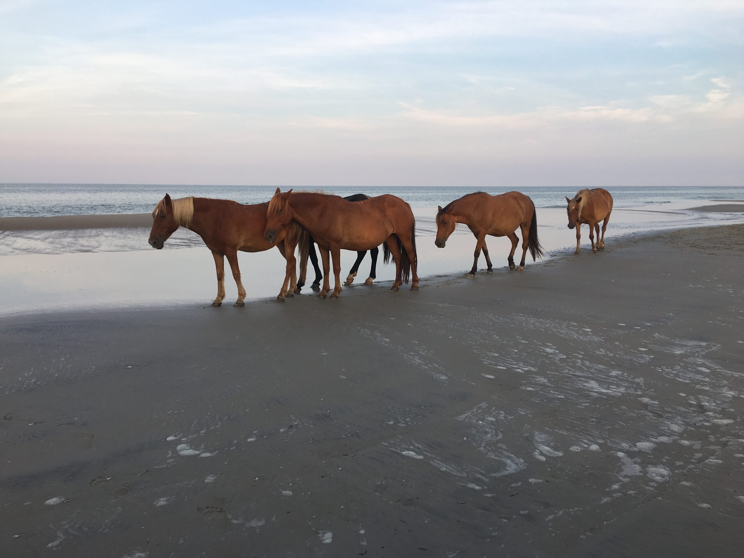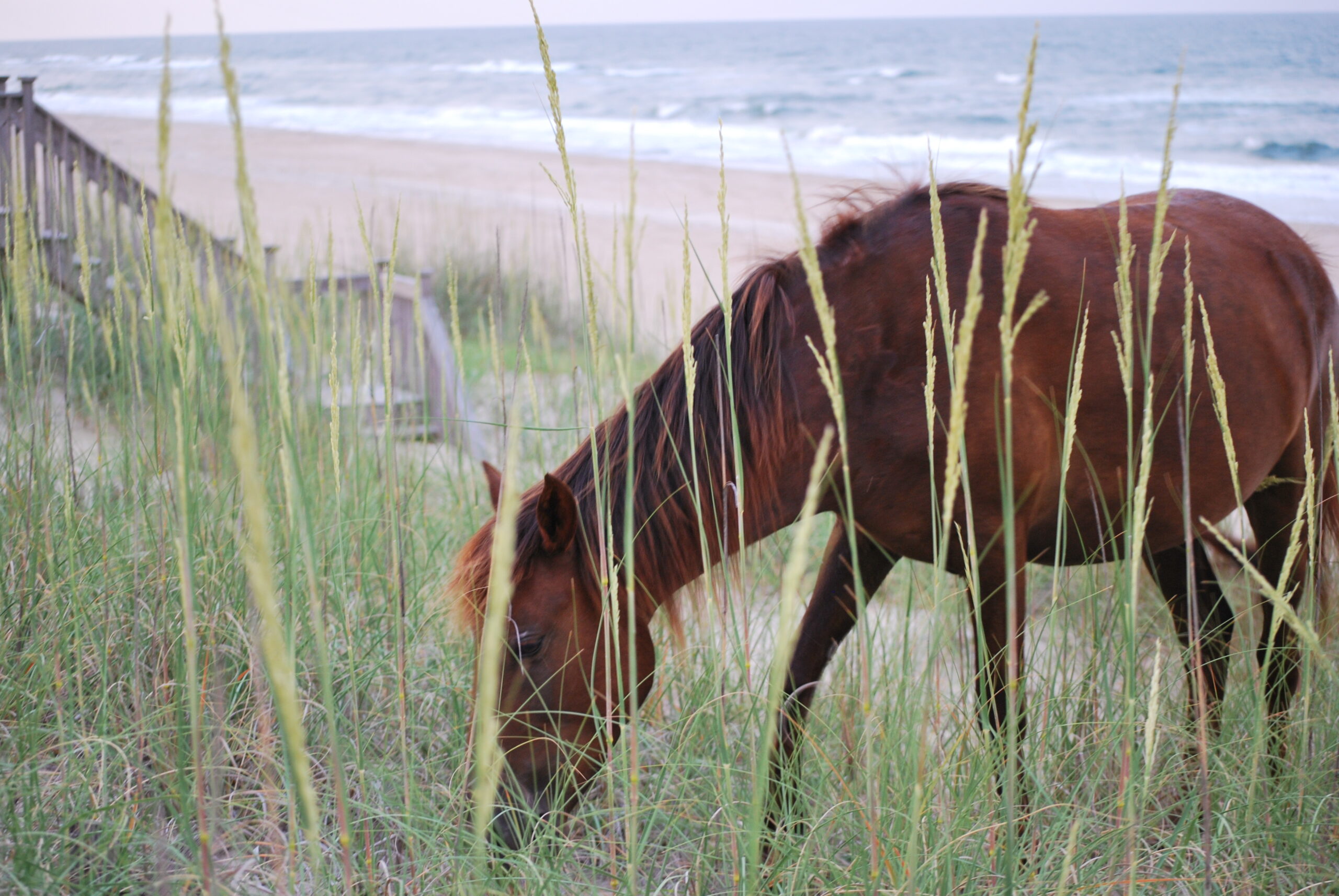 6 miles North, tours (which include Corolla/OBX history) or your own 4 wheel drive vehicle. These horses are descendants of Spanish Mustangs brought here by early explorers. In 2010 the North Carolina General Assembly designated the Colonial Spanish Mustang as the official state horse. This is well worth the price of a tour or driving on your own, just keep in mind these are wild horses.