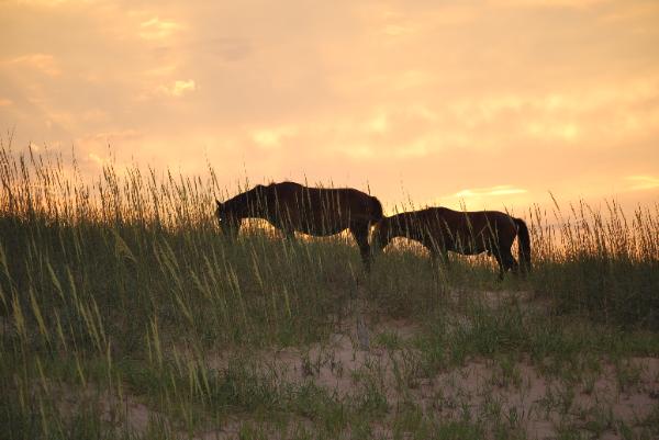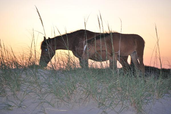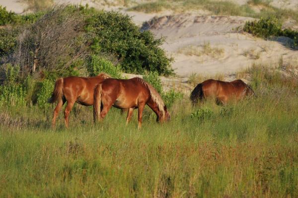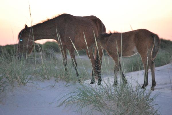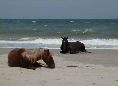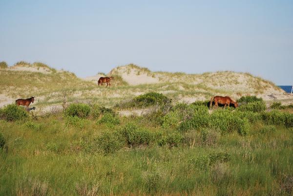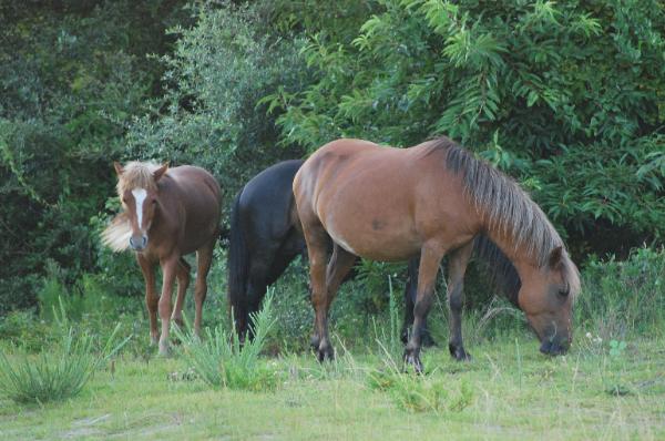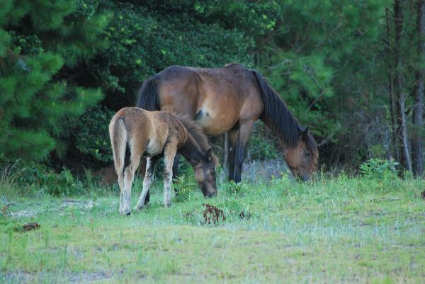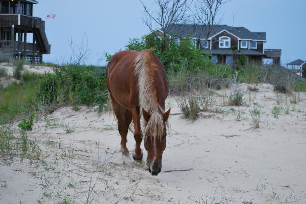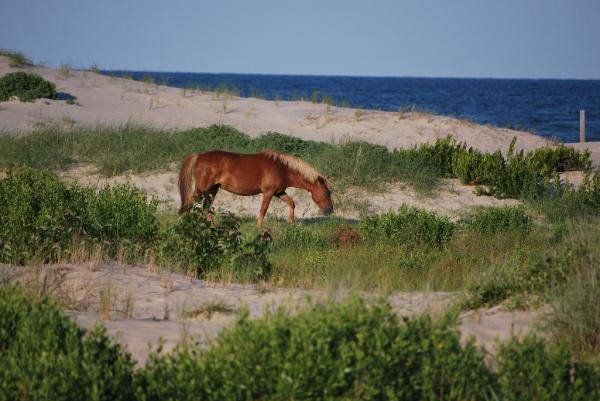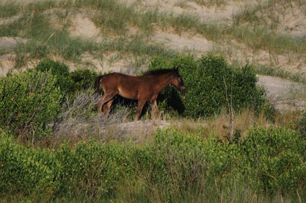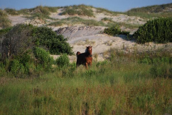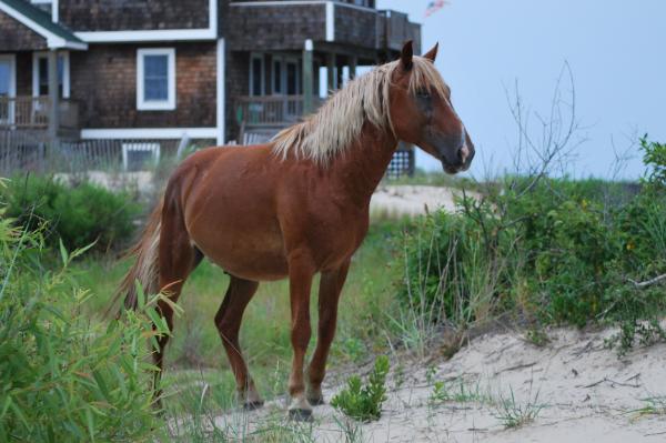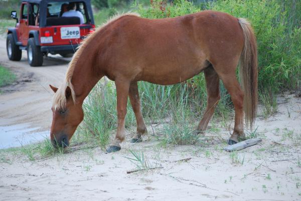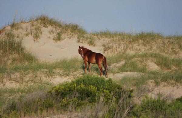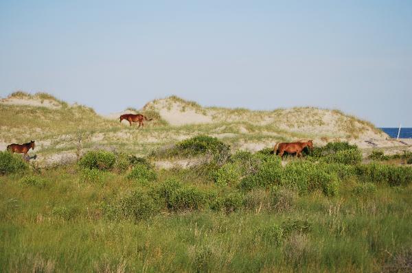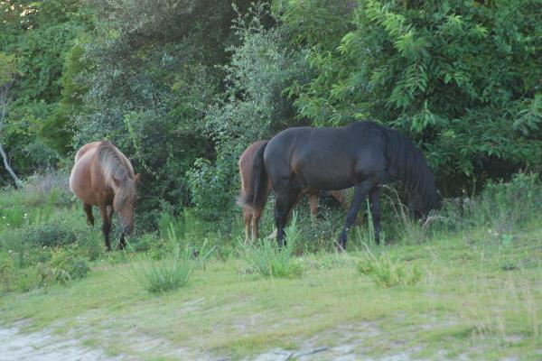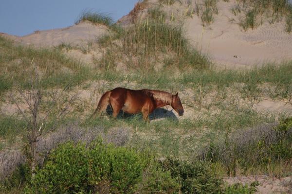 6 miles North, tours (which include Corolla/OBX history) or your own 4 wheel drive vehicle. These horses are descendants of Spanish Mustangs brought here by early explorers. In 2010 the North Carolina General Assembly designated the Colonial Spanish Mustang as the official state horse. This is well worth the price of a tour or driving on your own, just keep in mind these are wild horses.